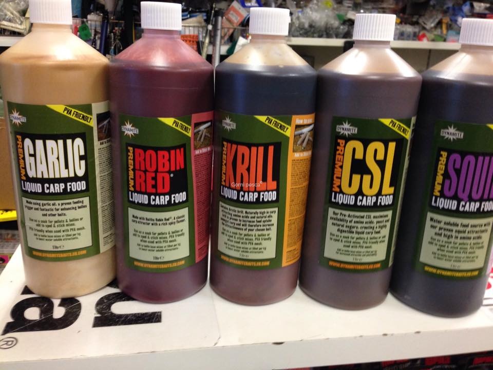 Gamma completa di additivi liquidi,in bottiglie da 1 litro,ideale per spod,miscele di particles,pasture,aggiunta nei mix per boiles. Compatibili con sacchetti e retine pva.